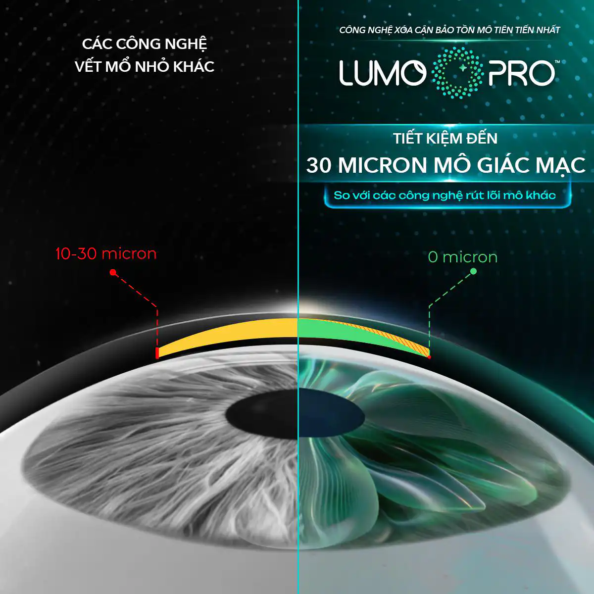 Công nghệ LUMOPRO™ là bước tiến mới trong nhóm các công nghệ xóa cận qua vết mổ nhỏ. Kỹ thuật này sử dụng mức năng lượng laser thông minh, dịu nhẹ hơn 50% và có khả năng tiết kiệm hơn 30 micron mô giác mạc so với các thế hệ xóa cận vết mổ nhỏ khác.